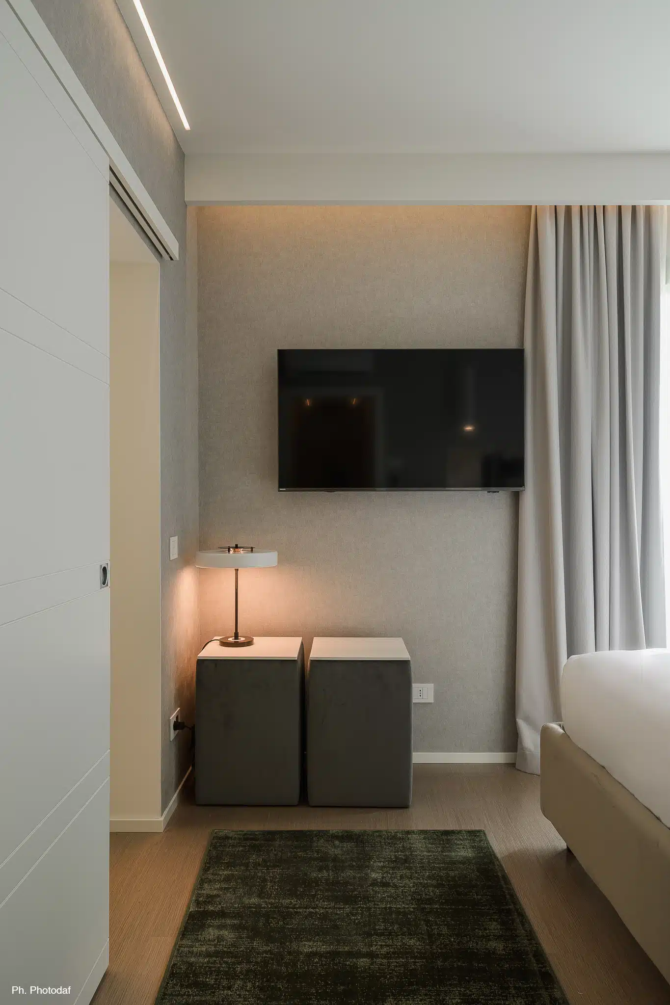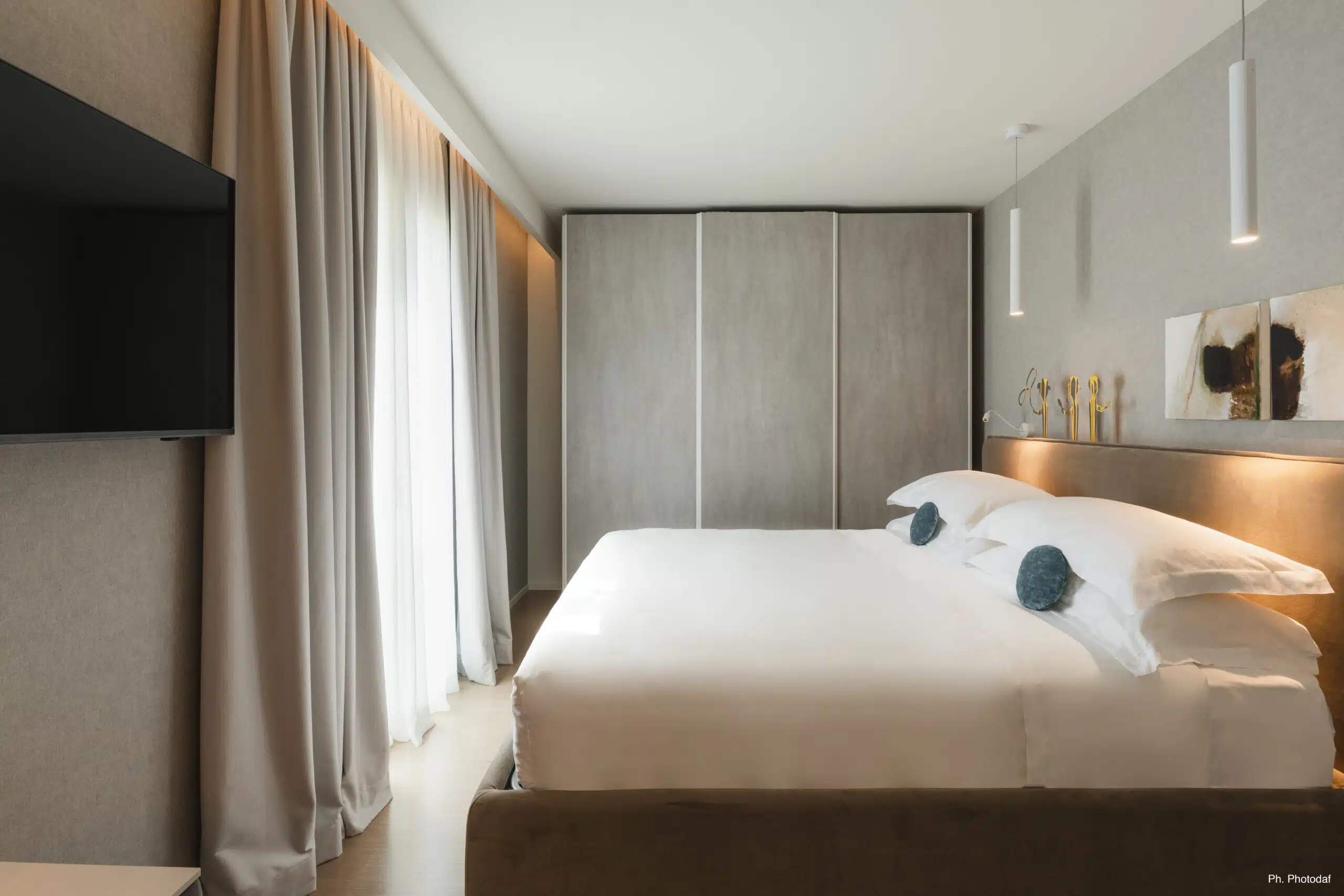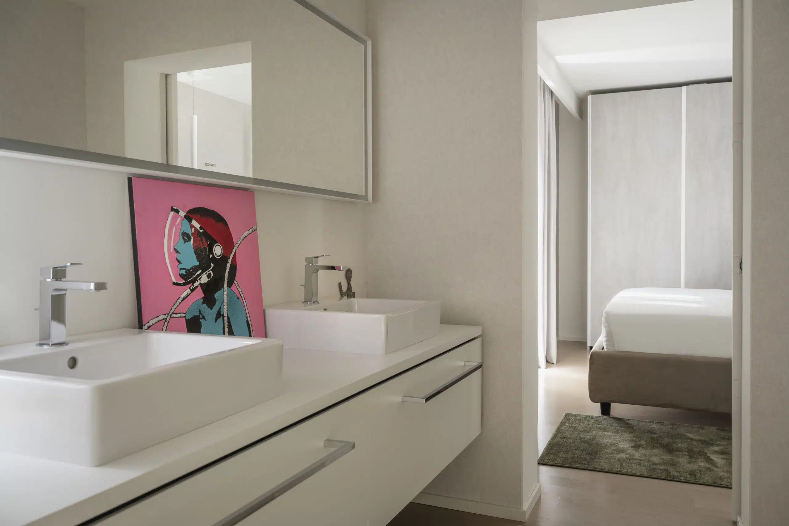 La suite “Mini’mor”, firmata da Alessia Galimberti & Partners e realizzata da Hi Contract, racconta un minimalismo colto e poetico, in cui ogni forma e colore sono calibrati per trasmettere armonia. Linee geometriche, materiali naturali e tonalità neutre dialogano per creare uno spazio che favorisce il benessere e invita alla riflessione.